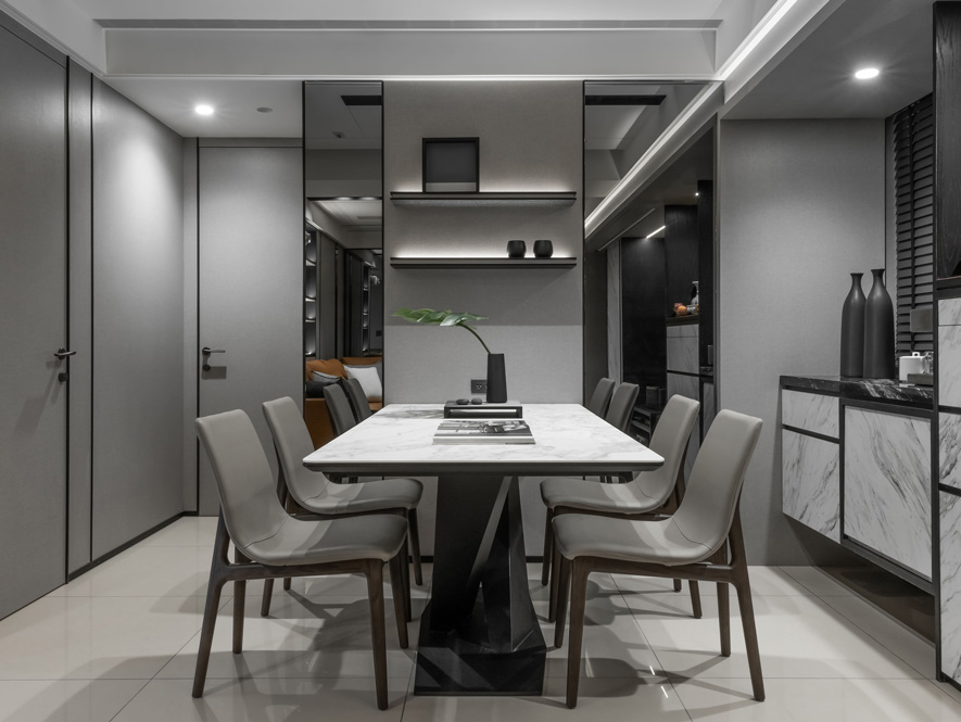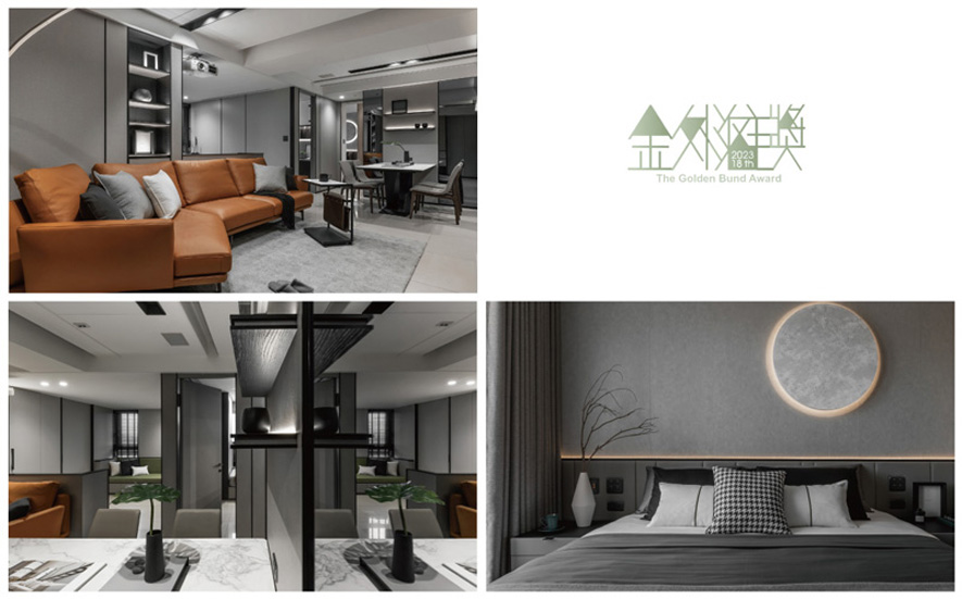實創設計 賴姿伊 設計總監 以灰色系奠定沉穩放鬆調性,輔綴白灰相間石紋美耐板打造水墨畫般的視覺效果,豐富空間表情之餘烘襯低調時尚的格調,綻放觸動心神的獨特藝韻,充分詮釋灰調魅力的美宅《雲潤星暉》深獲評審青睞,得到本屆賽事「最佳居住空間獎」入圍獎榮譽!
